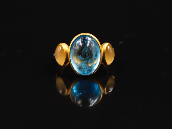 Scrives Scrives 17.5cts Aquamarine Pear shape Cabochons with 22 karat Gold Drop Plates Earrings €5.400,00
