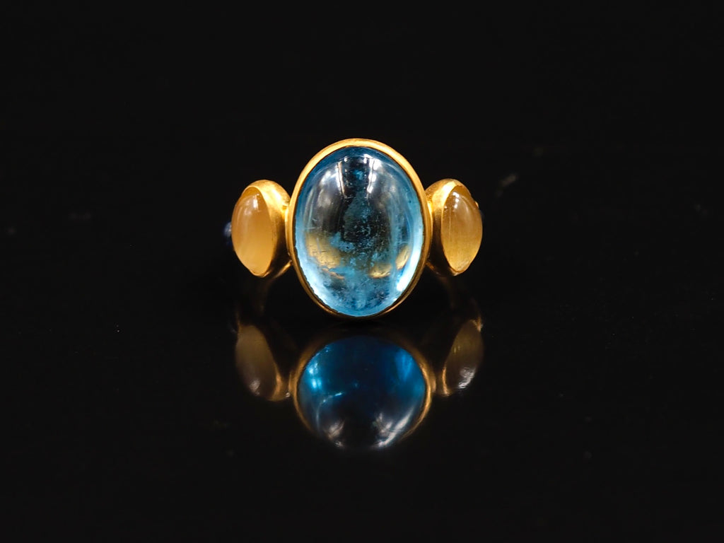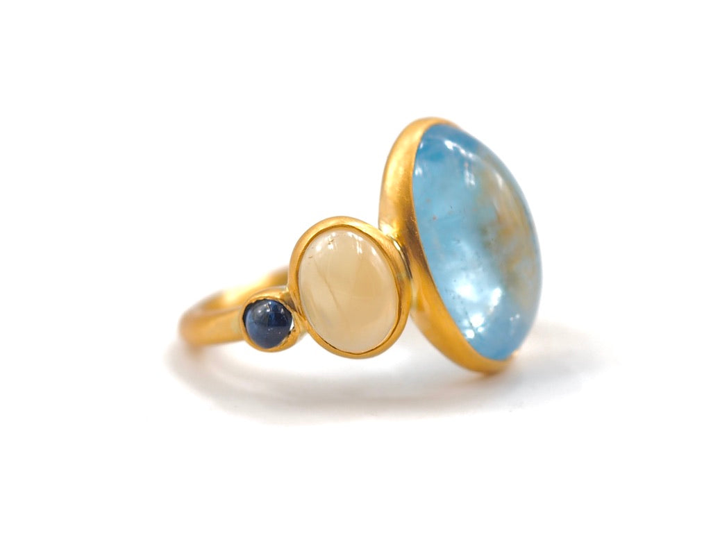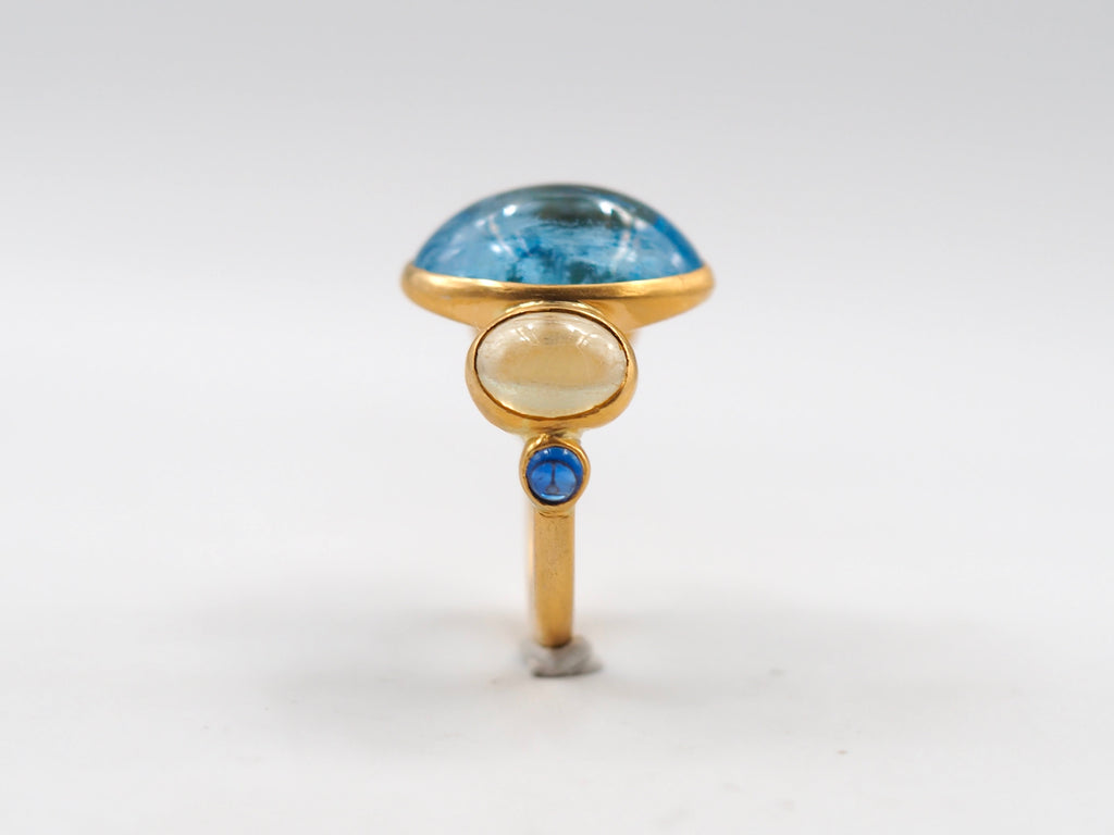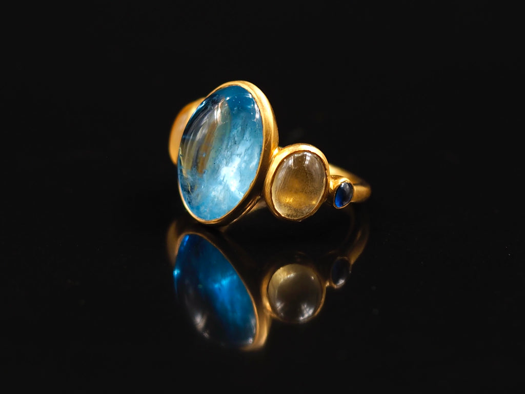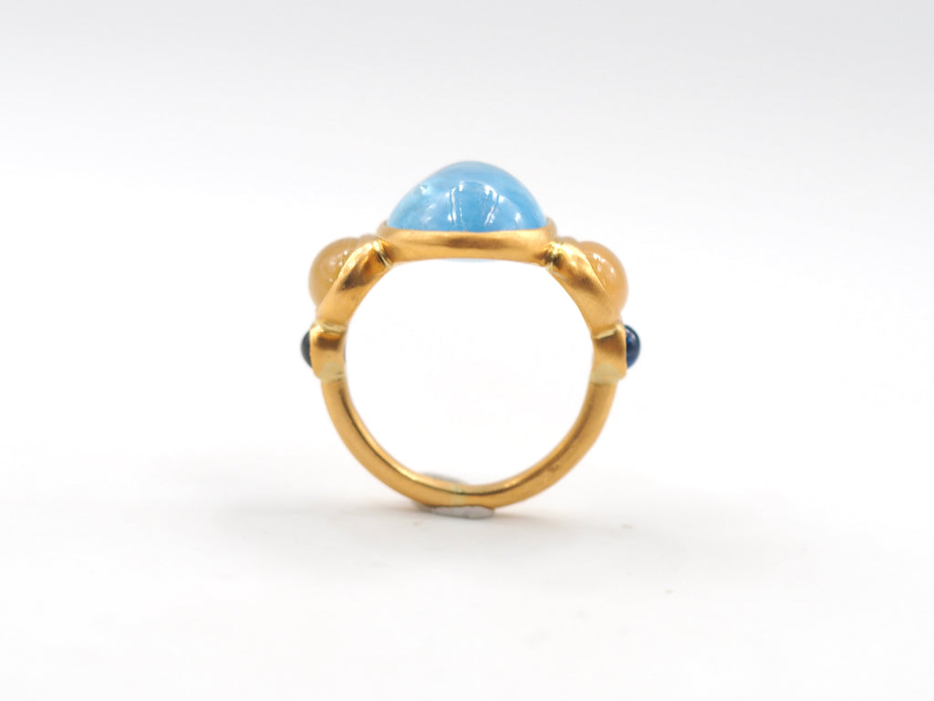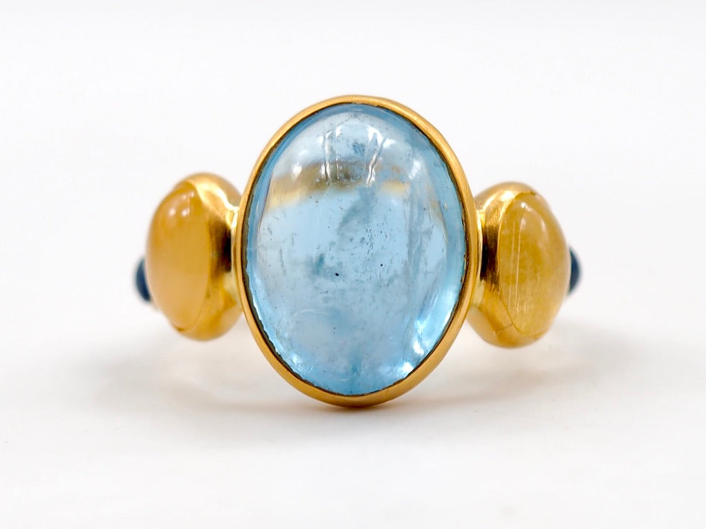 Scrives 8.45 Carat Aquamarine Yellow & Blue Sapphire Cabochon 22Kt Gold Ring