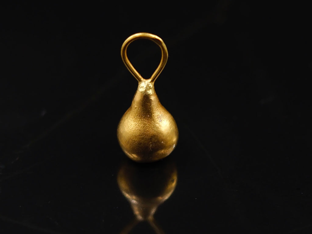 This pendant has been handmade in the shape of a pear in 22kt gold. It is a one-of-a-kind piece, only one has been made.