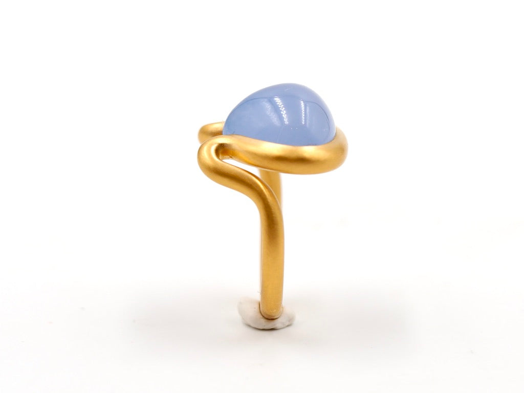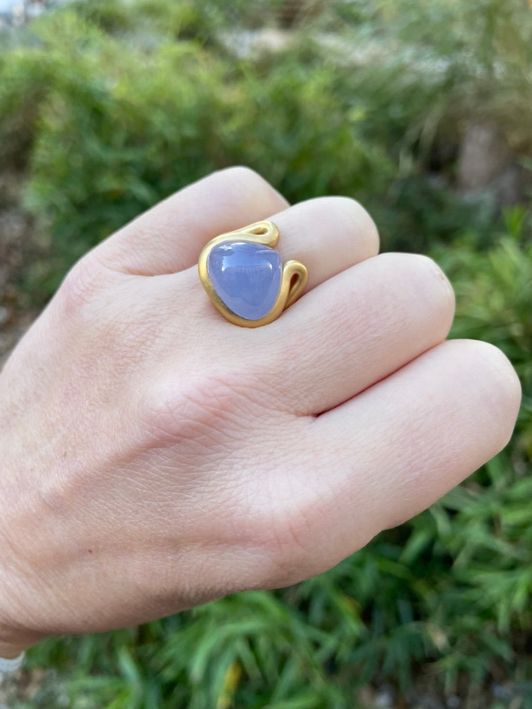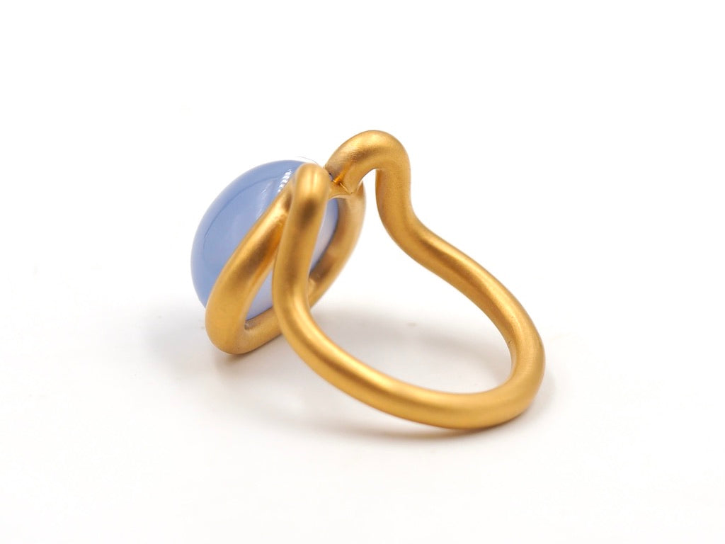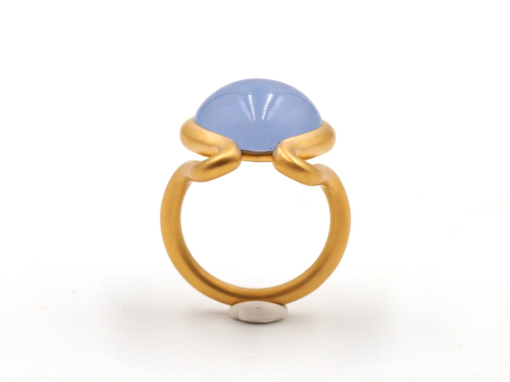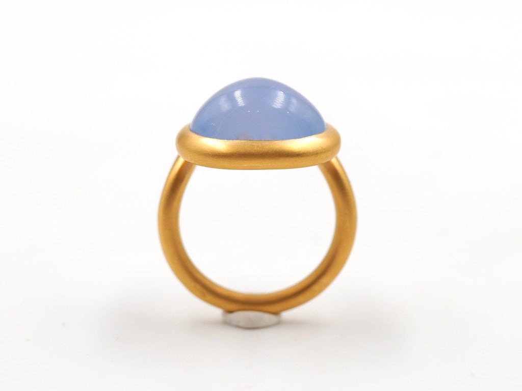 Scrives 8.5 carat Blue Chalcedony Cabochon in 22 Karat Gold Handmade Ring