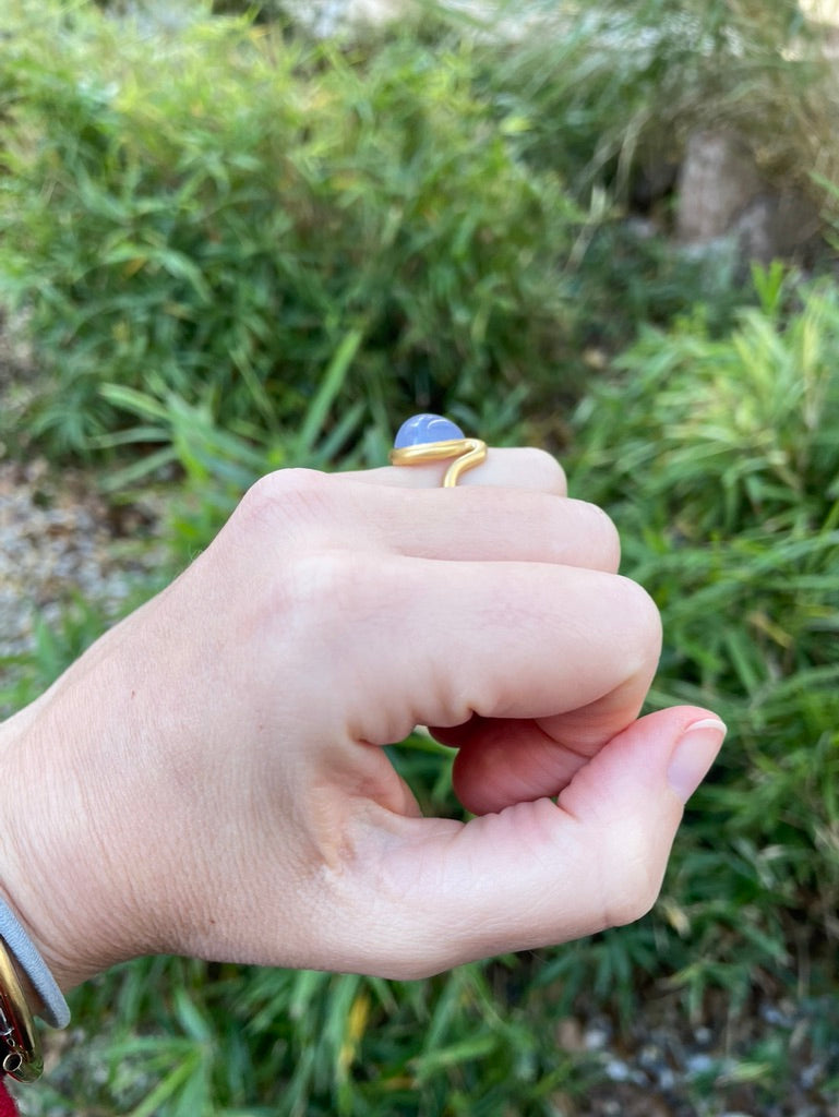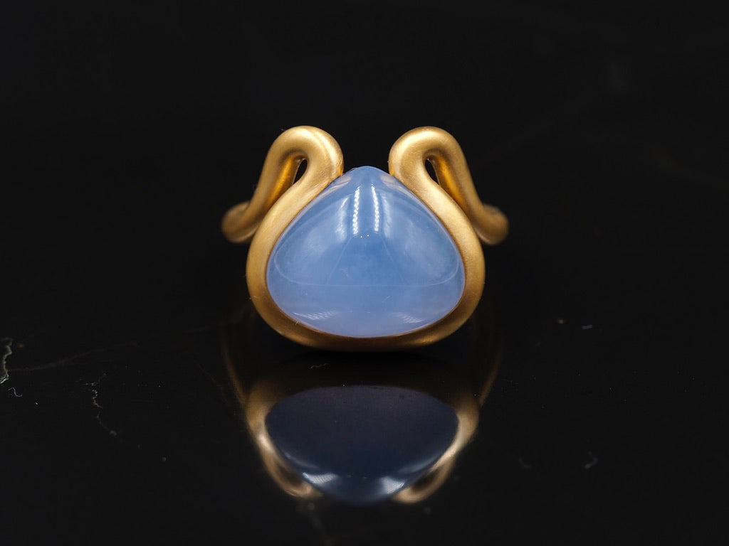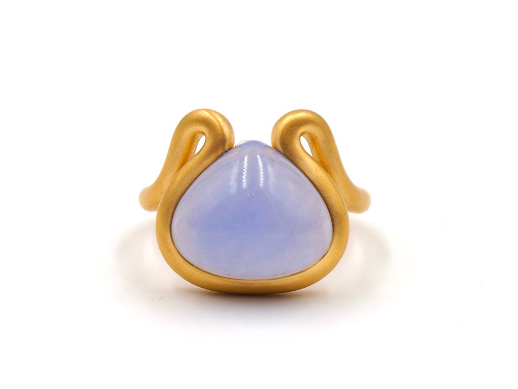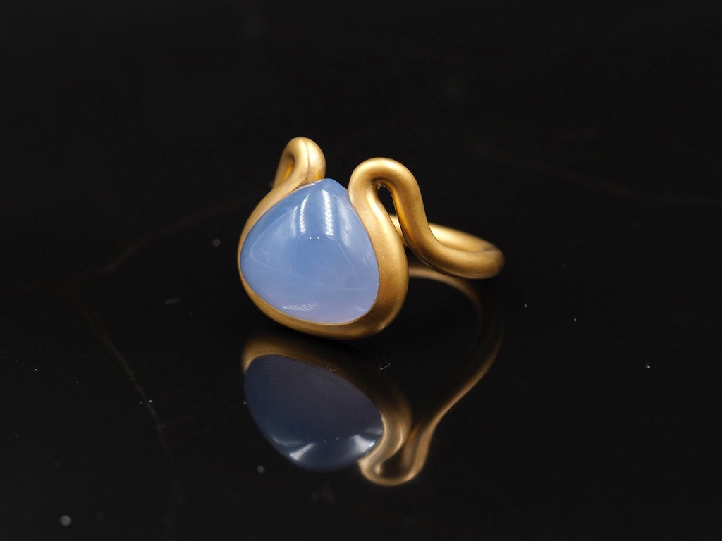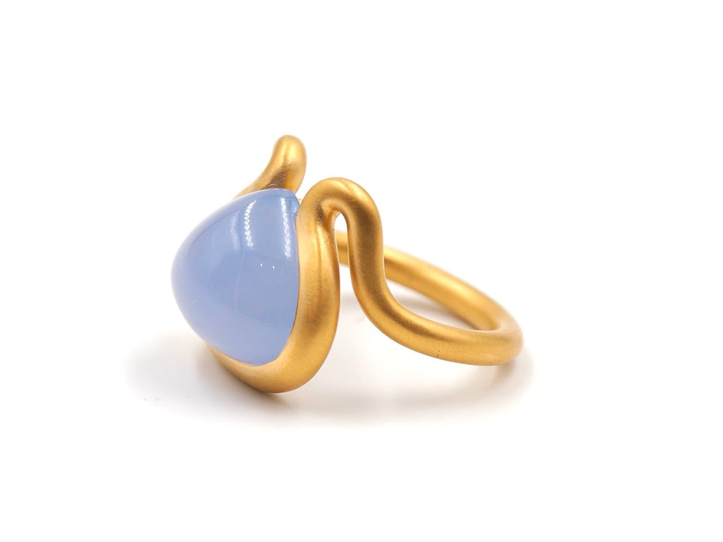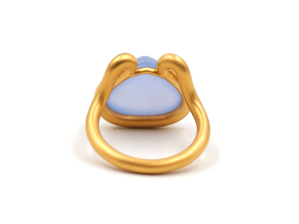 Scrives 8.5 carat Blue Chalcedony Cabochon in 22 Karat Gold Handmade Ring