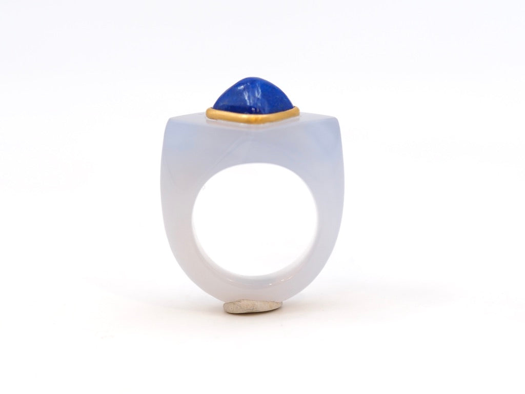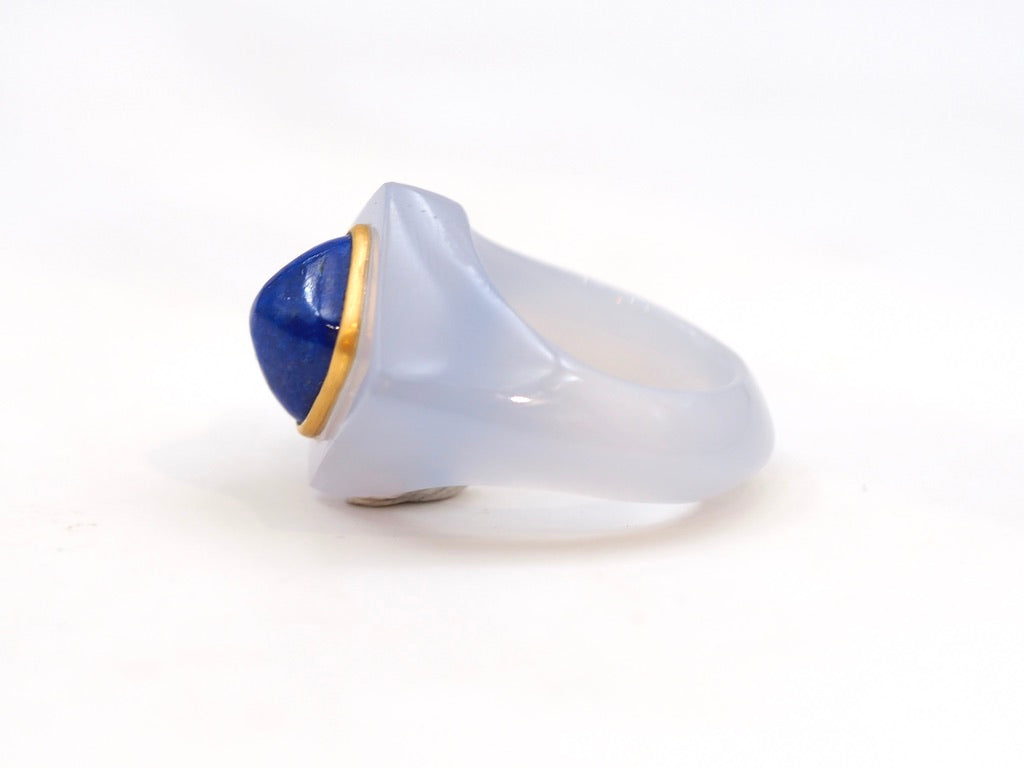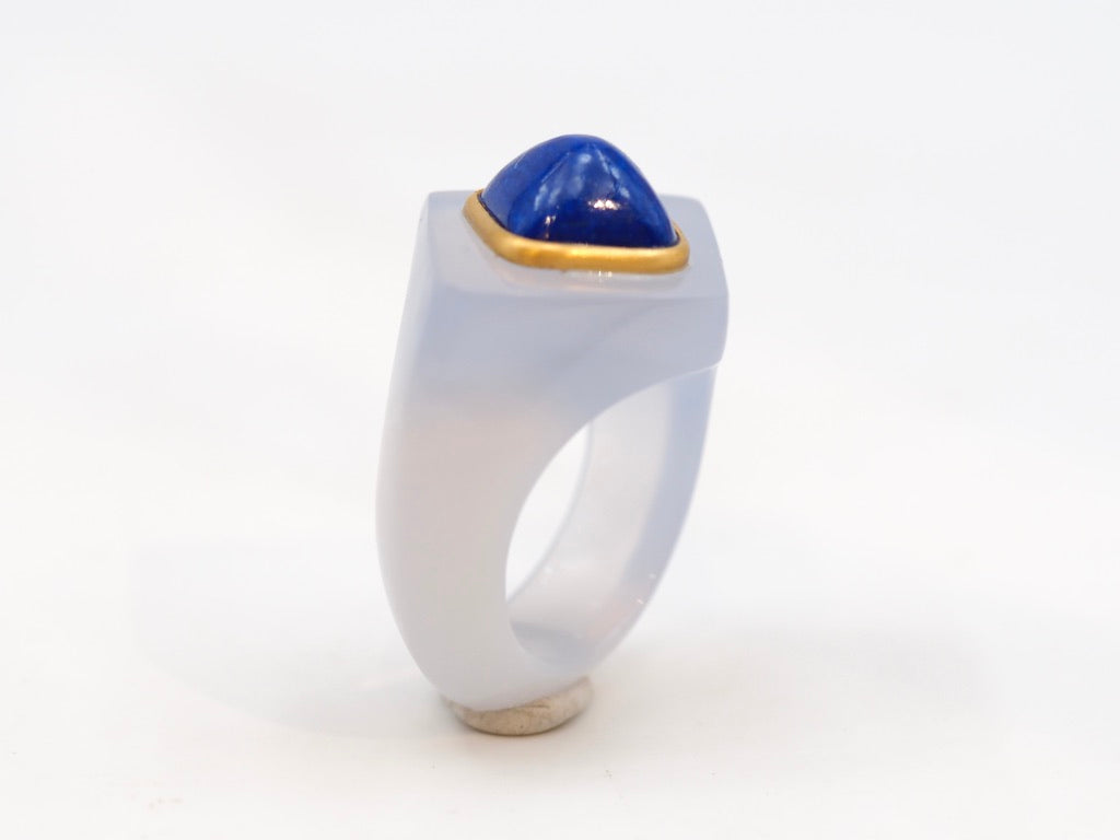 Scrives Lapis Lazuli Sugarloaf in Blue Chalcedony & 22 Karat Gold Ring
